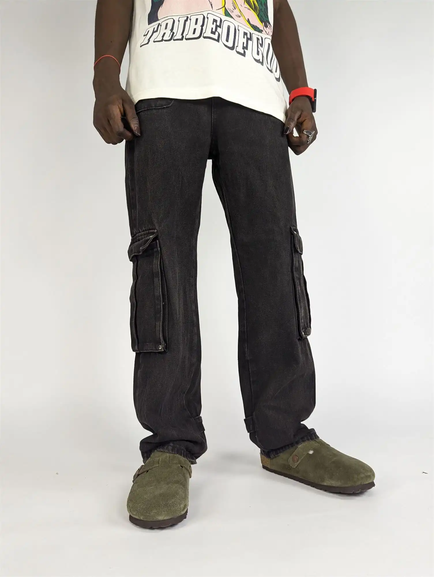 Rich Black Cargo Pants – where fashion meets function. Elevate your attire with these versatile, sleek cargo pants.”